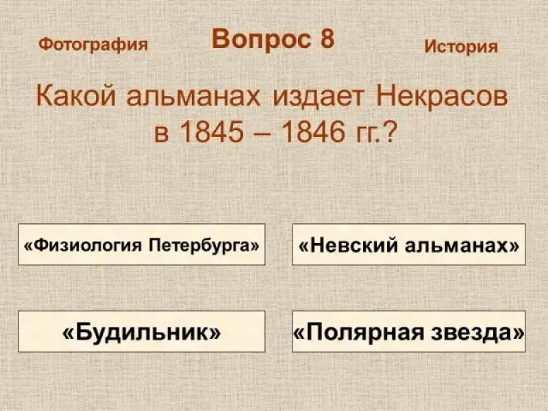 - Какой альманах издает Некрасов в 1845 - 1846 гг.?