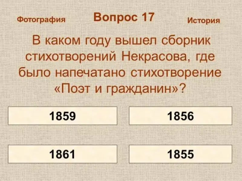 - В каком году вышел сборник стихотворений Некрасова, где было напечатано стихотворение "Поэт и гражданин"?