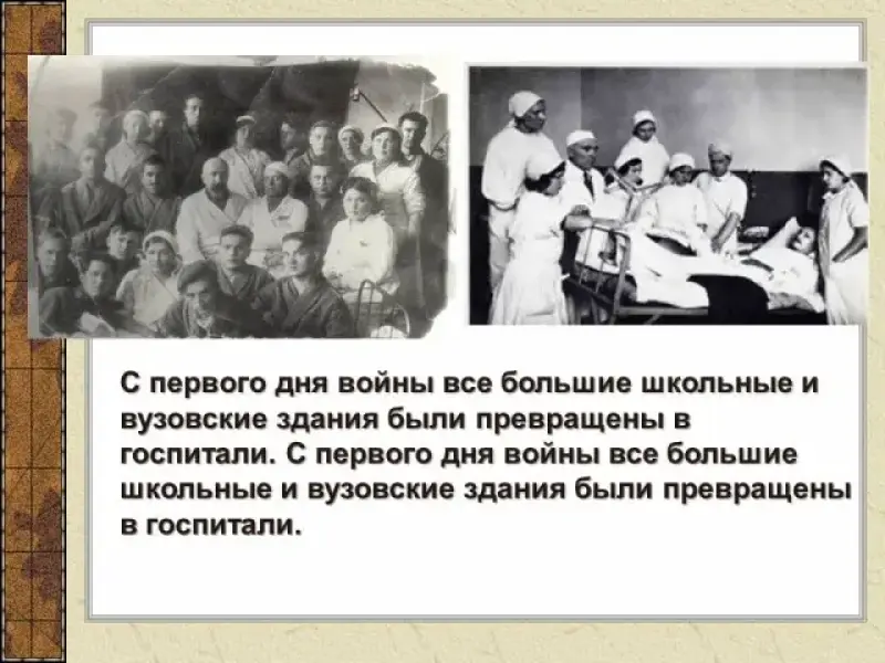 С первого дня войны все большие школьные и вузовские здания были превращены в госпитали. Через иркутские госпиталя прошло свыше 100 тыс. раненых, и 97% выписавшихся из них оказались пригодными для боевого и трудового фронтов.