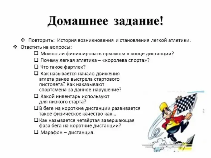 - Актуализировать знания учащихся о лёгкой атлетике и беге.
