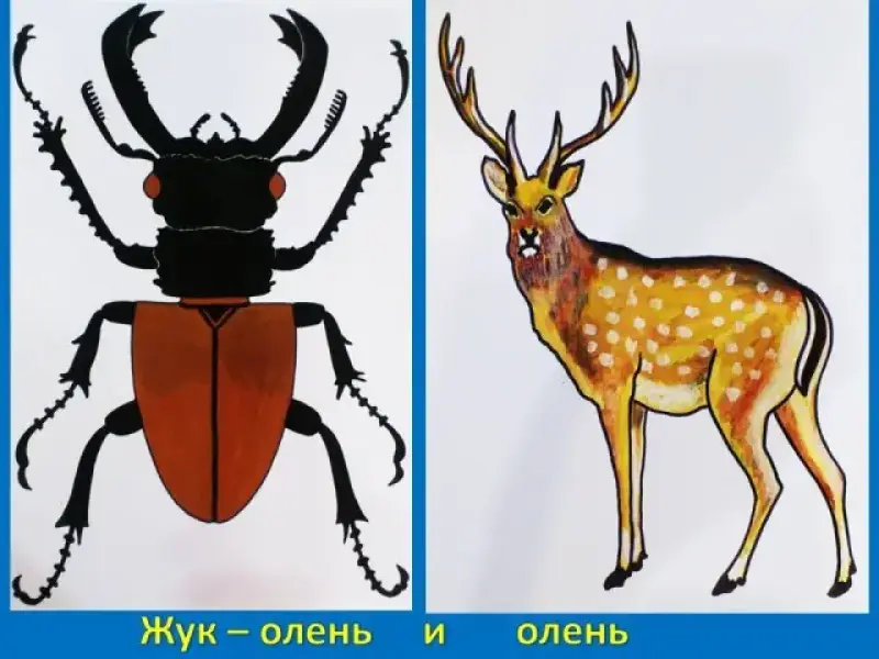 (голова, грудь, брюшко, крылья, надкрылья, усики, глаза, ноги, ротовые части) - Какой формы туловище? (как видно из рисунков, жуки разнообразны по форме и размерам - овальные, круглые, треугольные, прямоугольные, от огромных, размером с карандаш, до таких малюсеньких, что их почти невозможно разглядеть) - Какие лапки? (изогнутые) - Какой формы надкрылья и крылья? (округлой) - Какова роль надкрыльев? (жёсткие надкрылья защищают тонкие нижние крылья, жук убирает их, когда взлетает) - Для чего нужны крылья? (махая крыльями, жук передвигается в воздушном пространстве) - Что прикрепляется к груди? (к этой части прикрепляются ноги и крылья) - Как передвигаются жуки? |