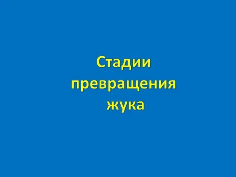 (Примерно четыре стадии: 1) яйцо (слайд № 20), 2) личинка (слайд № 21), 3) куколка (слайд № 22), 4) взрослое насекомое (слайд № 23)