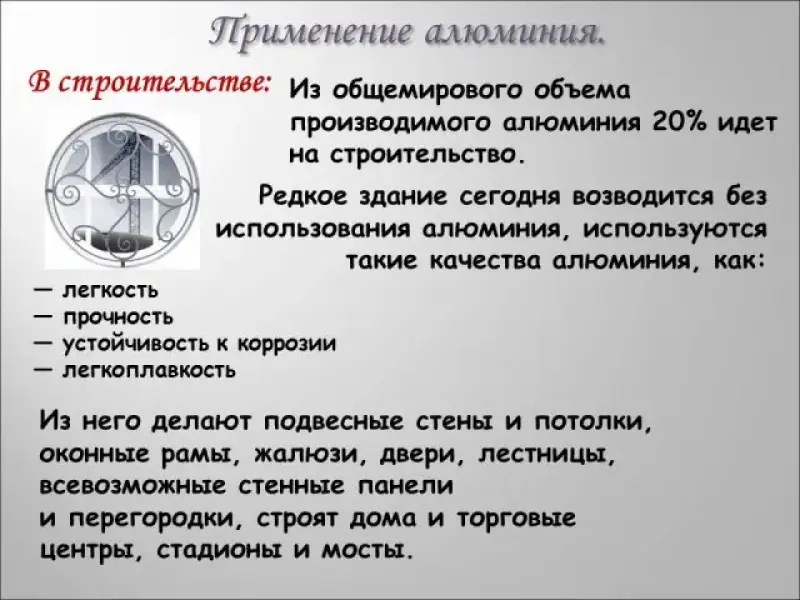 - Применение алюминия в строительстве