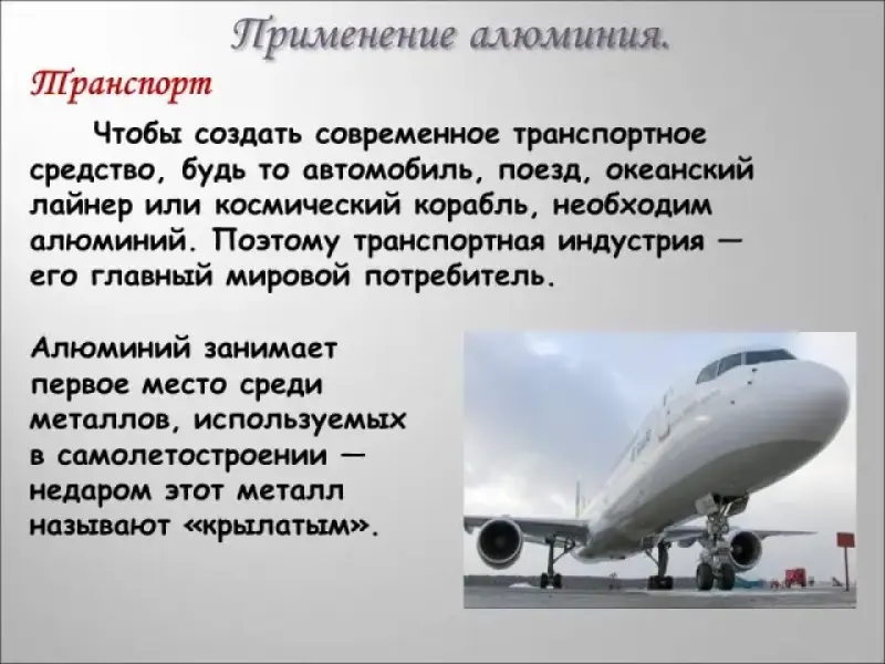 - Применение алюминия на транспорте