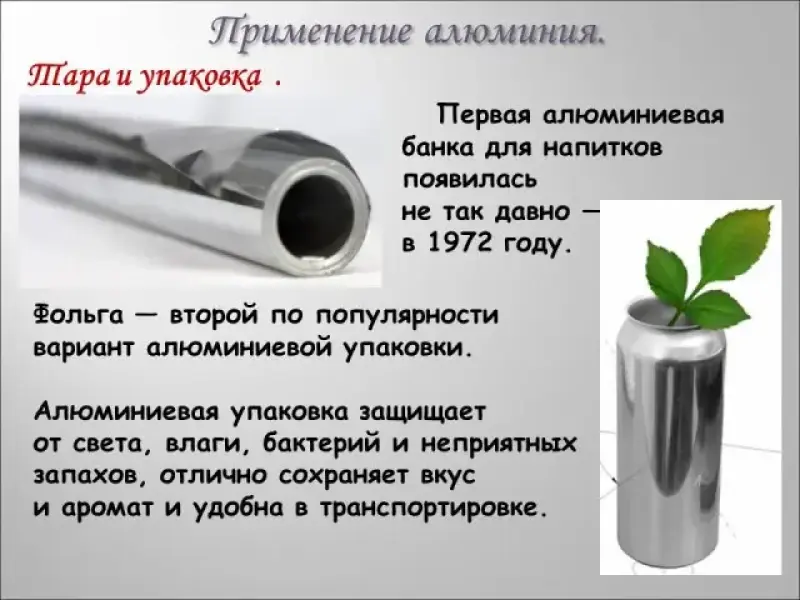 - Использование алюминия в упаковке и др. целях