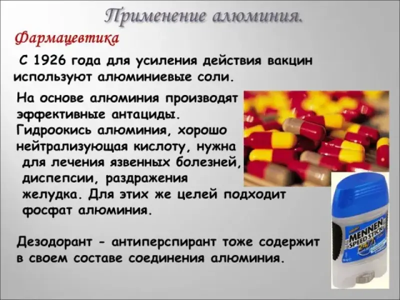 - Применение алюминия в фармацевтике