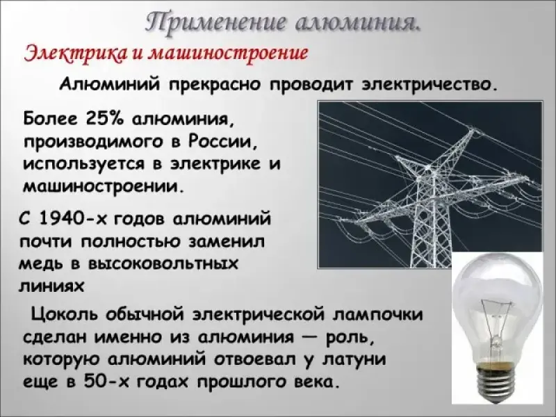 - Применение алюминия в электрике и машиностроении