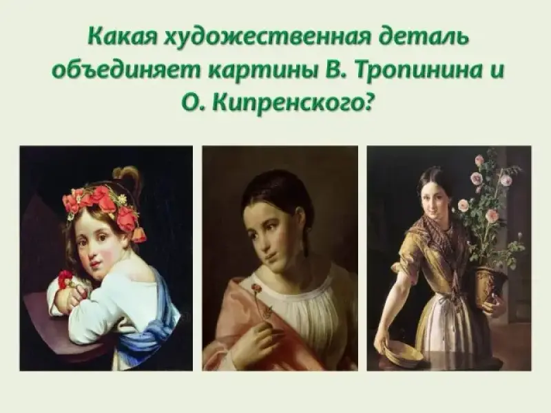 Слайд 4. Перед вами фрагменты картин В. Тропинина и О. Кипренского: