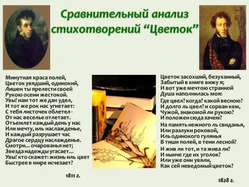 Провести сравнительный лингвистический и литературоведческий анализ стихотворений "Цветок" В. Жуковского и А. Пушкина (индивидуальное задание).