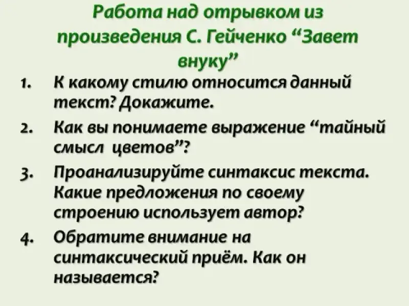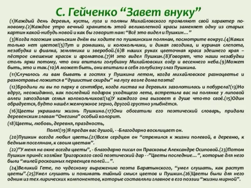 Слайд 15. Прочитайте отрывок из книги Семёна Гейченко "Завет внуку".