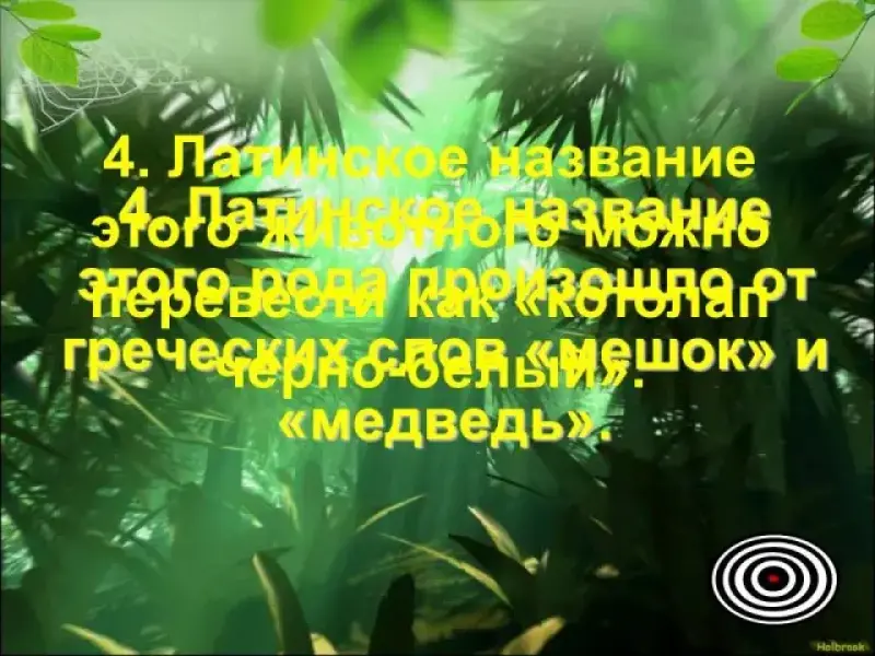 | 25 - 29 | Видеовопрос | В 1961 году - в год образования Всемирного фонда дикой природы (WWF), первая панда по имени Чи-Чи посетила Европу. В лондонском зоопарке ее увидел один из основателей WWF - ученый и художник-анималист Сэр Питер Скотт. Он сделал стилизованный портрет панды. И решил, что изображение именно этого добродушного, редкого, нуждающегося в защите животного, станет прекрасным символом нового фонда. Кроме того, сэр Скотт практично заметил, что черно-белый логотип необыкновенно легок и дешев в воспроизведении. | 6 мин |