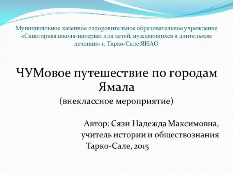 Внеклассное мероприятие на тему «ЧУМовое путешествие по городам ЯМАЛа»