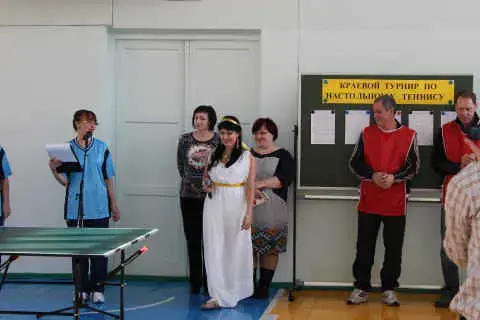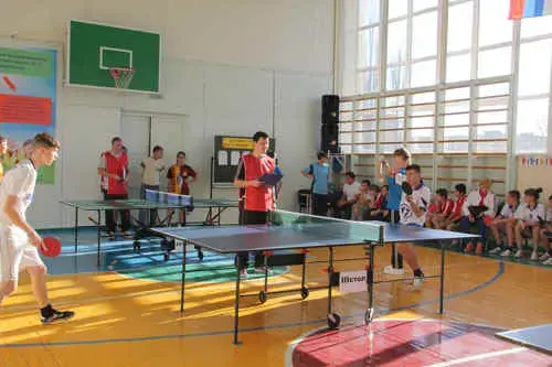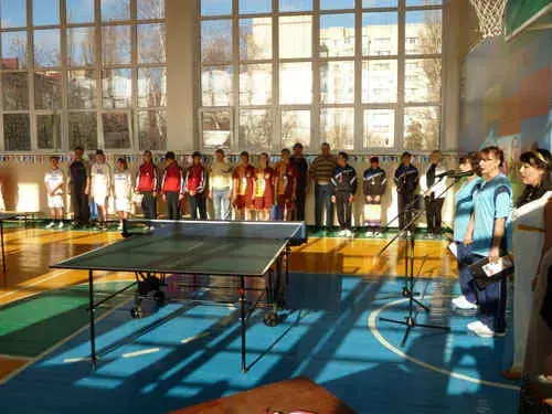 Ведущий 1: Дорогие друзья! Уважаемые гости! Сегодня впервые в нашей школе проходит турнир по настольному теннису.