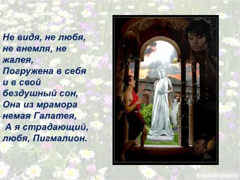 В каких произведениях эта тема находит продолжение? Какие примеры любовных отношений мы можем вспомнить? Это: Ромео и Джульетта, Орфей и Эвридика, Пигмалион и Галатея, Мастер и Маргарита, хан Гирей и гордая полячка Мария, Петрарка и Лаура.