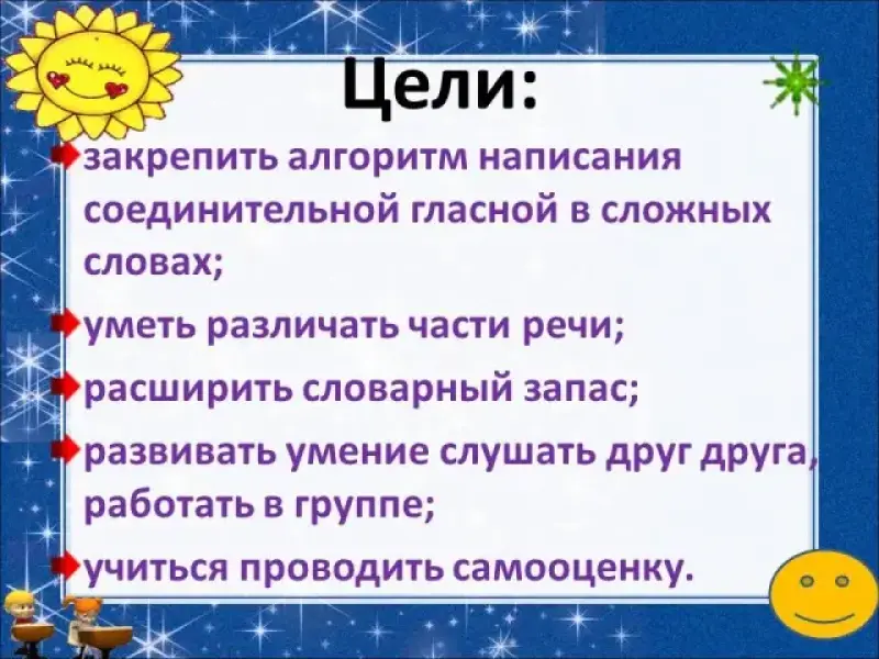 - Закрепить алгоритм написания соединительной гласной в сложных словах