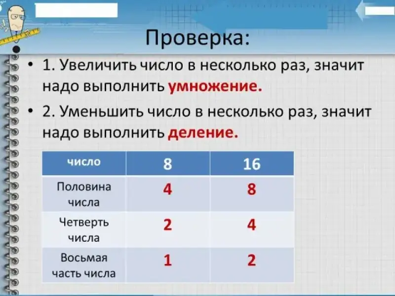 2. Уменьшить число в несколько раз, значит надо выполнить ... 1) сложение