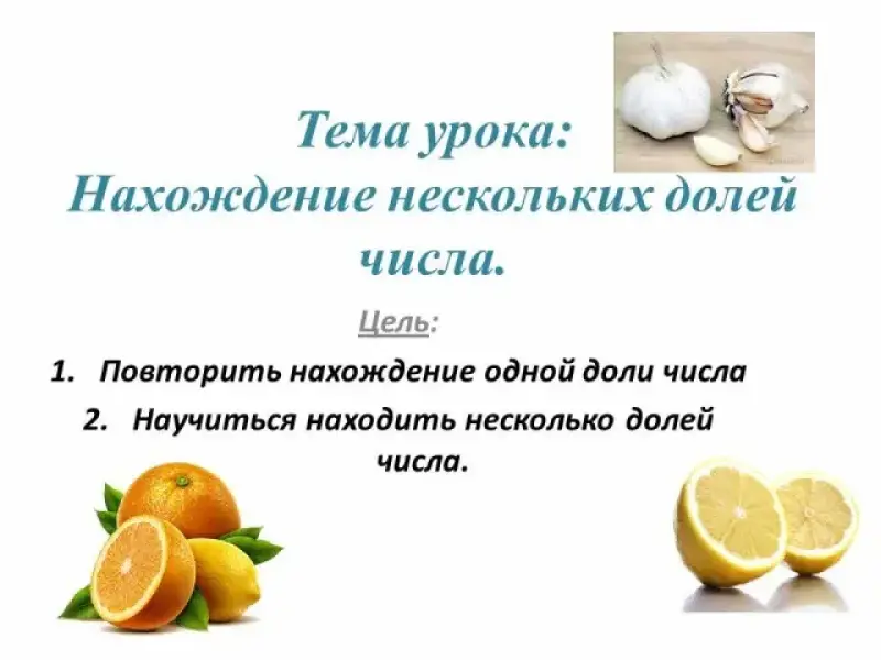 Нахождение нескольких долей числа. Цели: