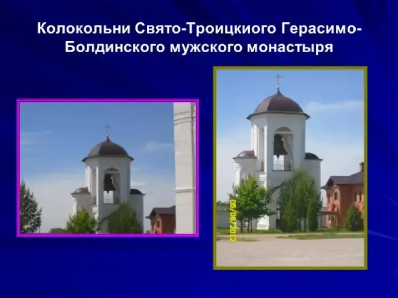 СЛАЙД 11-13 Колокольни Свято-Троицкиого Герасимо-Болдинского мужского монастыря.