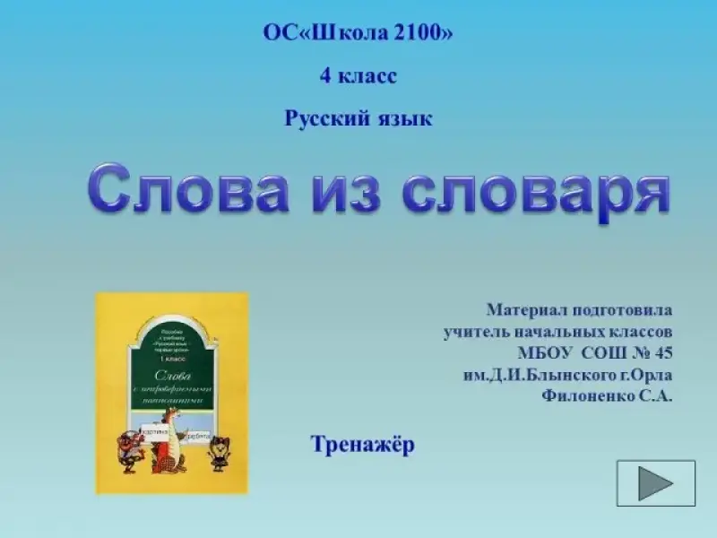 Интерактивный тренажер «Слова из словаря» ОС «Школа 2100». 4-й класс