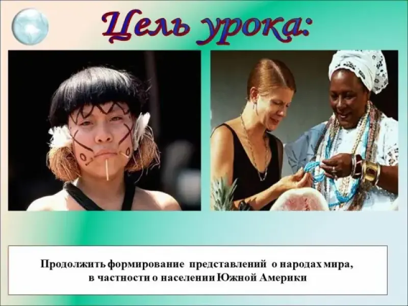 - сформировать представление об истории заселения Южной Америки, о прошлом и настоящем народов,