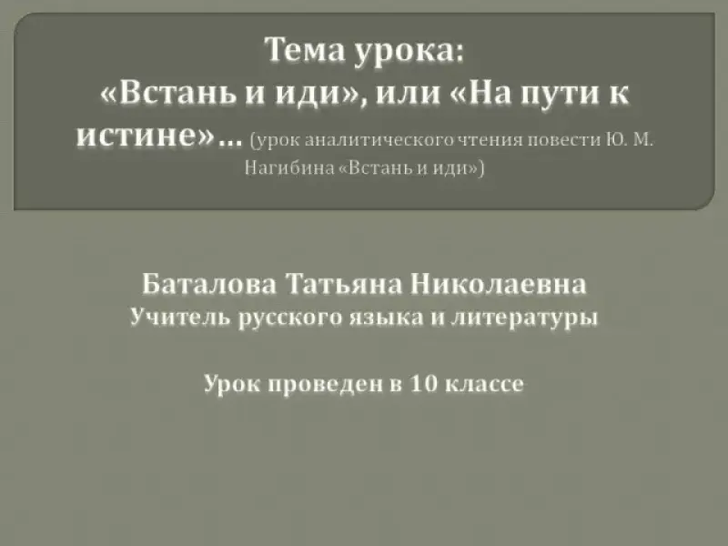 Встань и иди, или На пути к истине (урок аналитического чтения повести Ю.М. Нагибина «Встань и иди»)