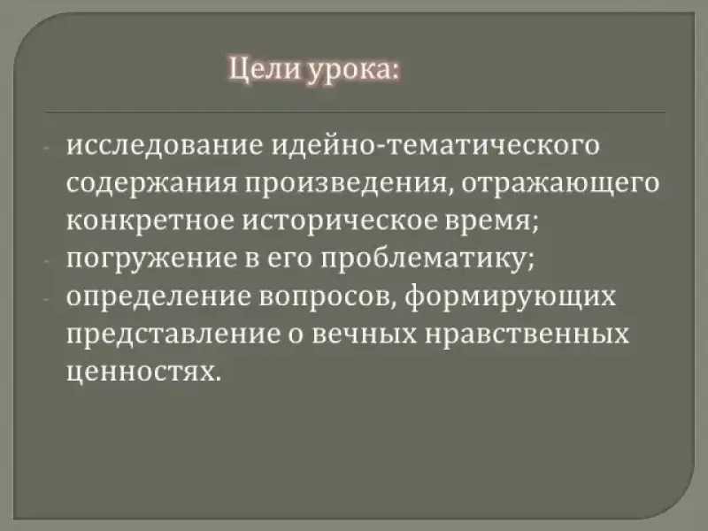 - решать проблему нравственного выбора, способствовать пробуждению у учащихся ответственности за свой выбор, за судьбу страны.