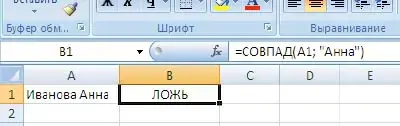 7) СОВПАД(текст1; текст2) - проверяет идентичность двух строк текста и возвращает значение истина или ложь. Прописные и строчные буквы различаются.