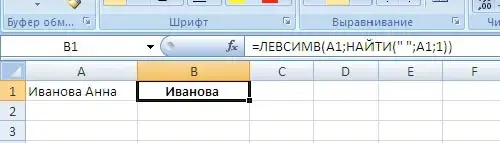 - Как выделить фамилию? Давайте рассуждать. Признаком того, что фамилия закончилась, служит пробел. Таким образом, слева нужно выделить количество символов до пробела.