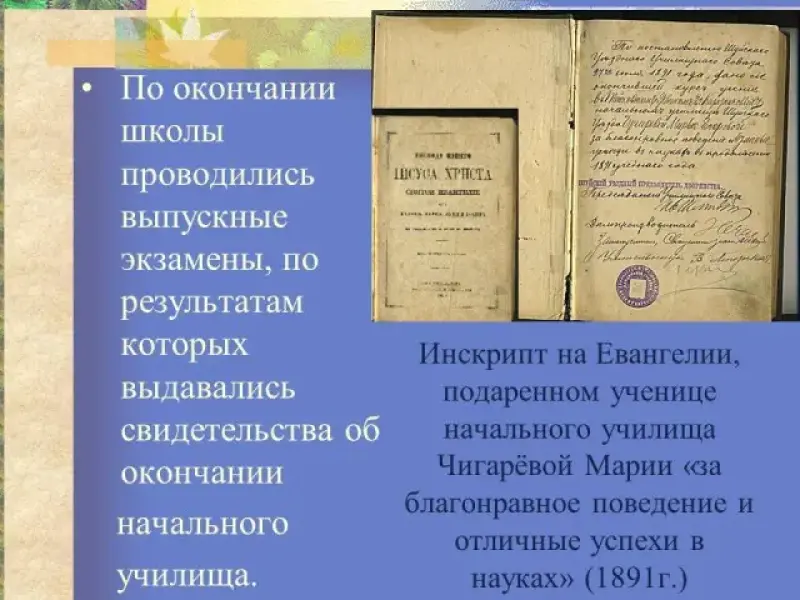 Домашнее задание: собрать материал по начальной истории школы для школьного музея.
