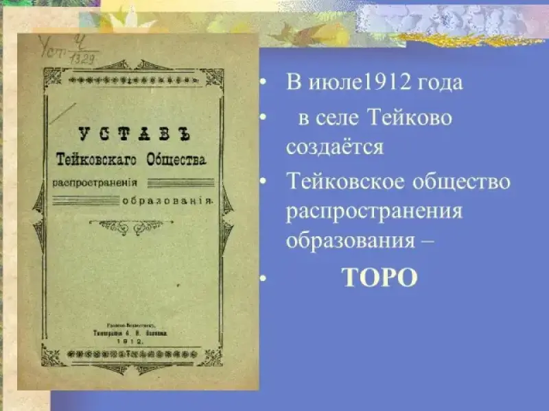 В июле 1912 года в селе Тейково создаётся Тейковское общество распространения образования - ТОРО.