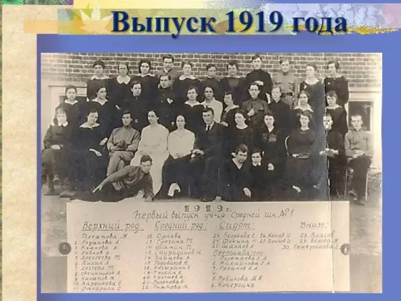 Так, в 1-ом классе, который был выпущен в 1919 году, училось: