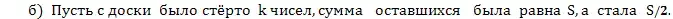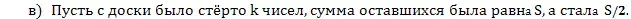 в). Найдите наибольшее возможное значение среднего арифметического чисел, которые остались на доске.