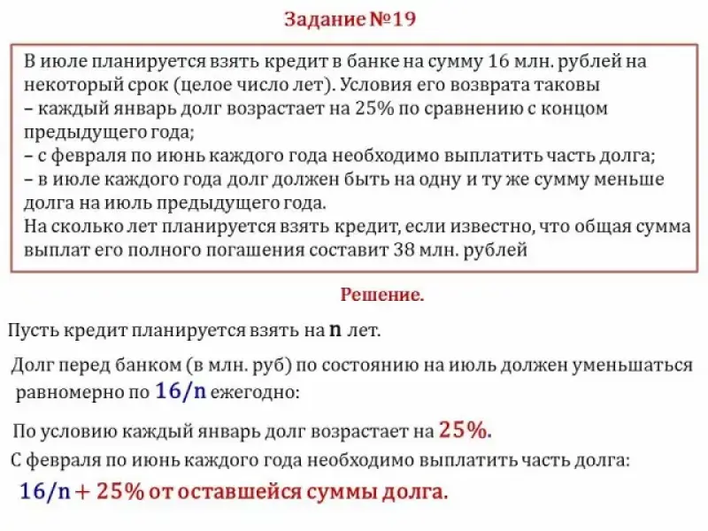 В июле планируется взять кредит в банке на сумму 16 млн. рублей на некоторый срок (целое число лет). Условия его возврата таковы: