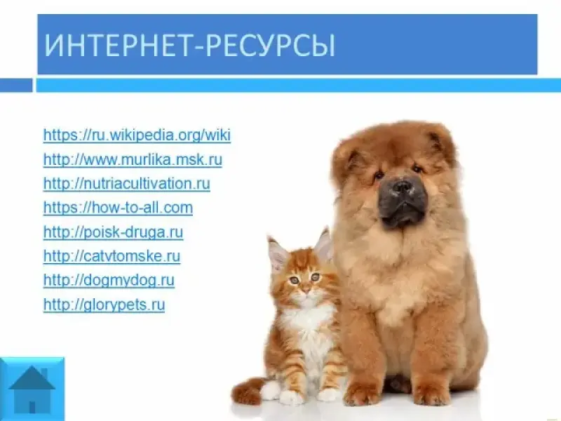 Учебные материалы и оборудование. ПК, мультимедийный проектор, SMART-доска, мультимедийная презентация "Про кошек и собак".