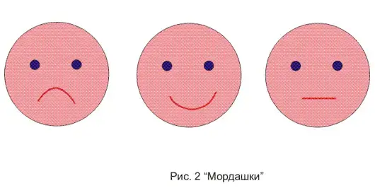 2 этап. Мотивационный этап. Так как педагогический совет проводится после уроков, во второй половине дня, необходимо для активизации мыслительной деятельности педагогов и настройки их на работу провести разминку: Участникам педагогического совета раздается рисунок №2 "Мордашки" и предлагается оцените свое самочувствие, выбрав одну из них: