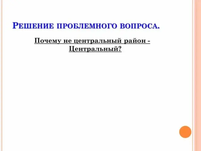 Проблемный вопрос! Почему не центральный район - Центральный? (слайд 9)