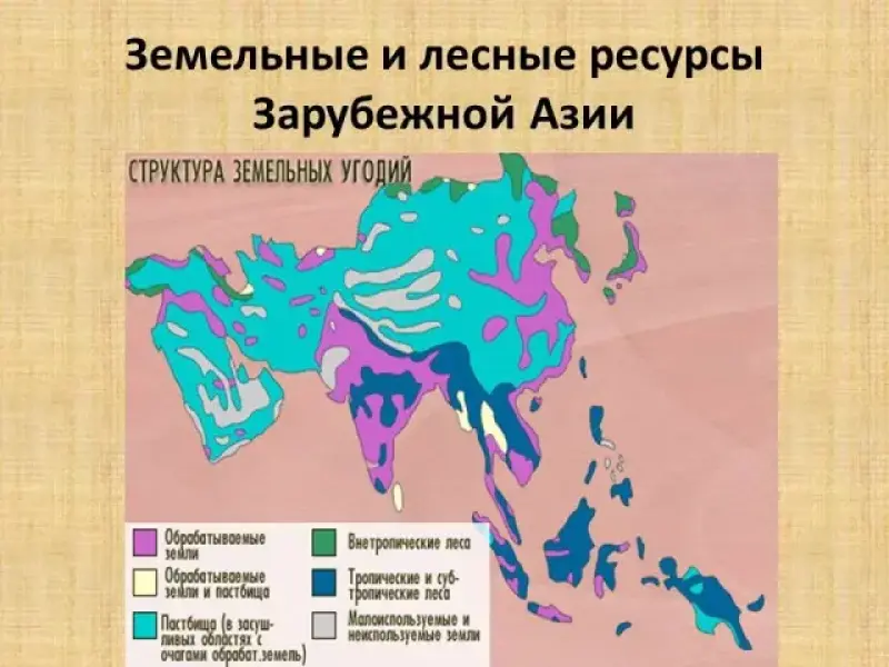 6) Каковы земельные и лесные ресурсы региона? Используя информацию учебника на рис. 99, стр. 221 и карту в атласе на стр.10 "Земельные и лесные ресурсы", перечислить структуру земельного фонда и регион Зарубежной Азии, выделяющийся по лесным ресурсам. Вывод?