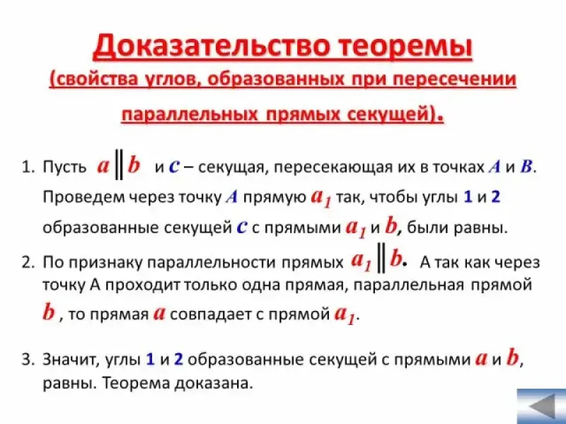 Свойство углов, образованных при пересечении параллельных прямых секущей. 7-й класс