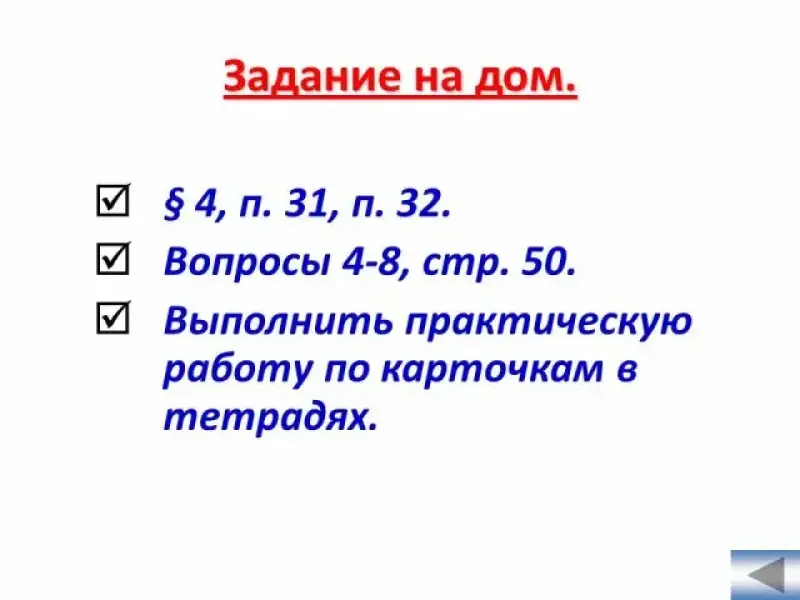 VI. Задание на дом. (Слайд 32)