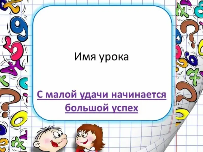 Еще раз повторите имя урока: "С маленькой удачи начинается большой успех!"