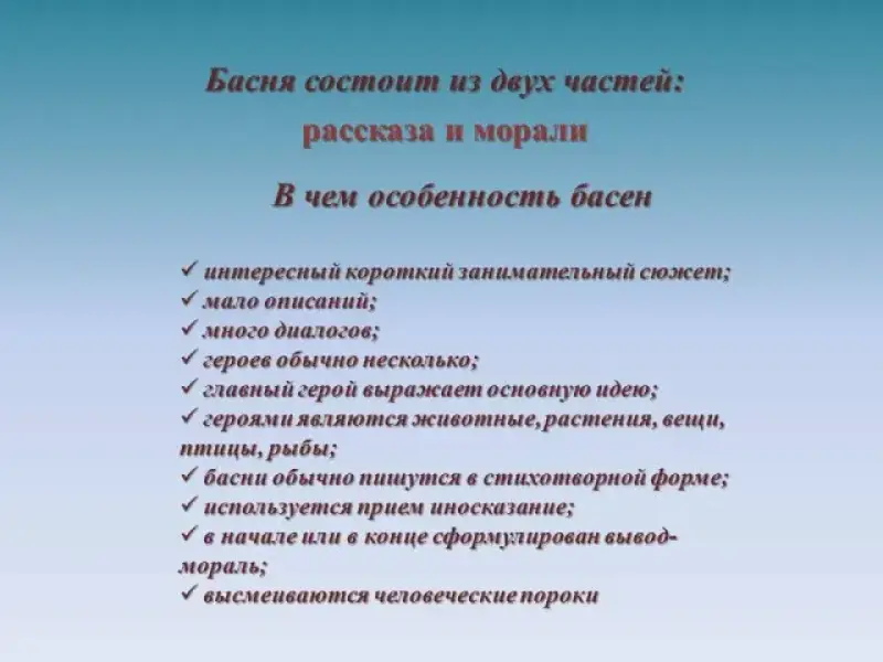 Учитель литературы: А что же такое басня и в чем ее особенность? (ответы учащихся). Слайд 6