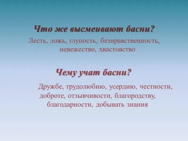 Что же высмеивают басни? Чему учат басни? Слайд 7