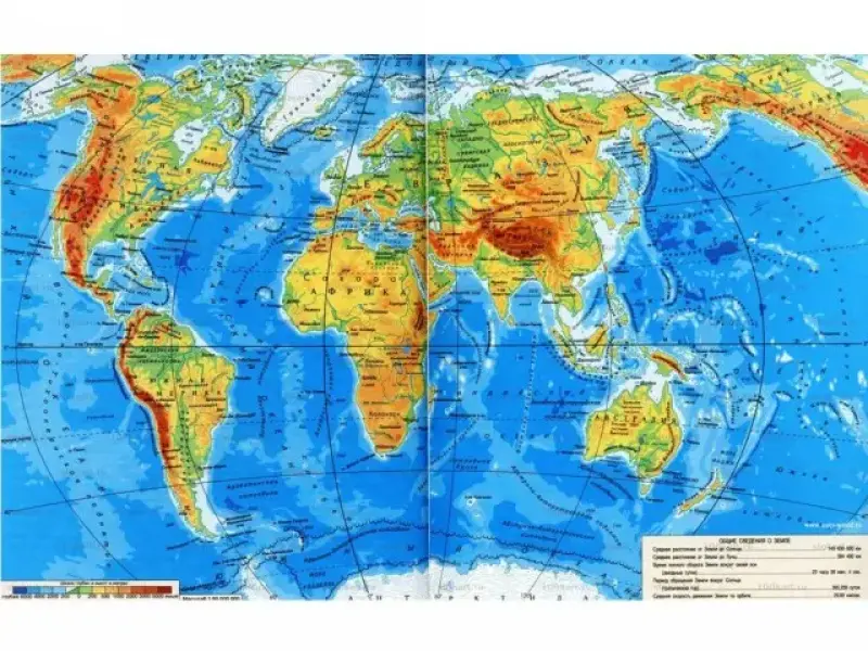 - Как вы считаете, что значит голубой цвет? (голубым цветом изображены моря, океаны, реки нашей планеты)