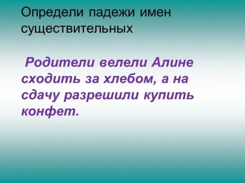 Учитель. Петров, пойди-ка к доске и определи, в каких падежах употреблены все имена существительные.