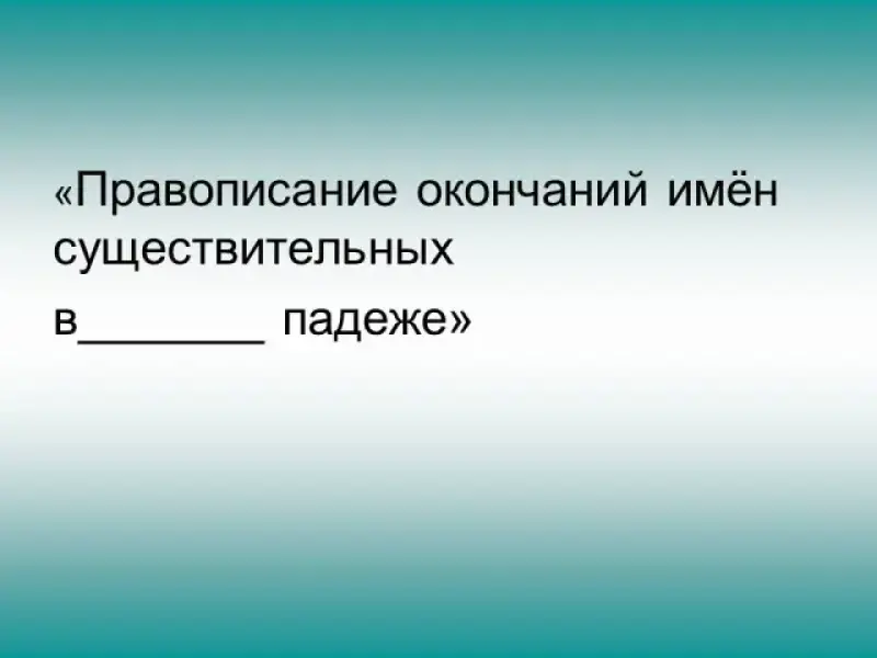 на слайде записана тема: "Правописание окончаний имен существительных в ... падеже"