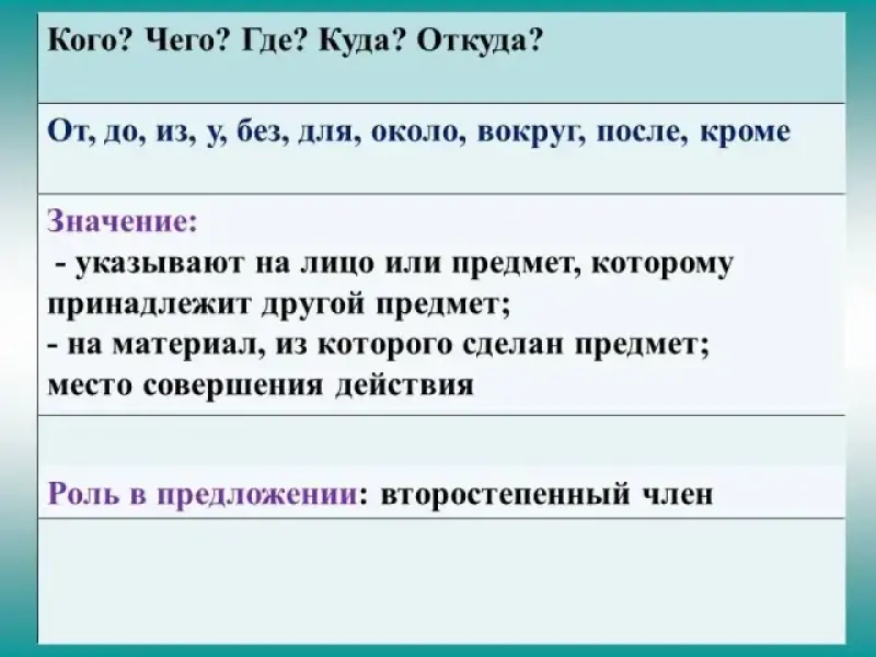 От, до, из, у, без, для, около, вокруг, после, кроме
