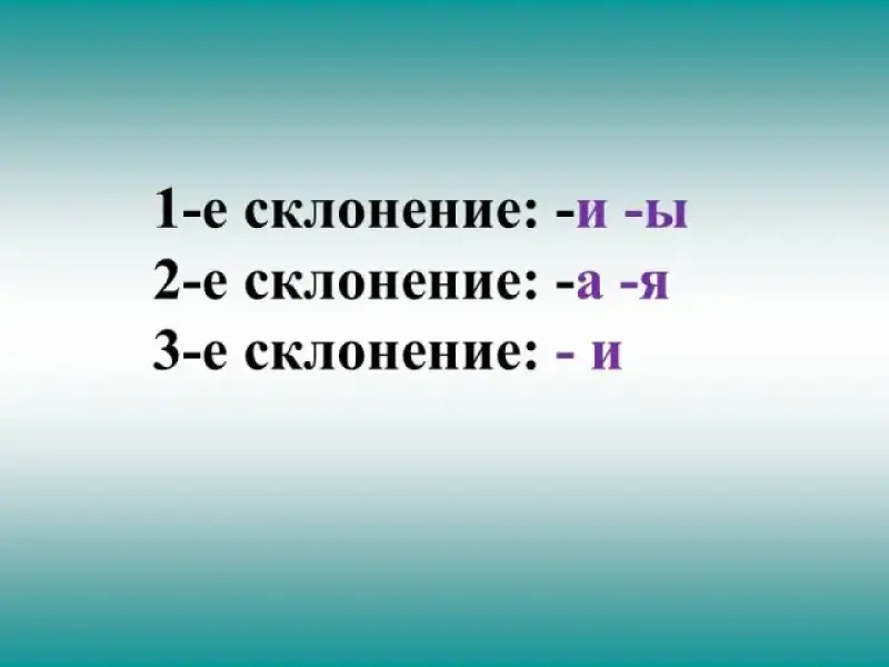 1-е склонение: -и -ы 2-е склонение: -а -я
