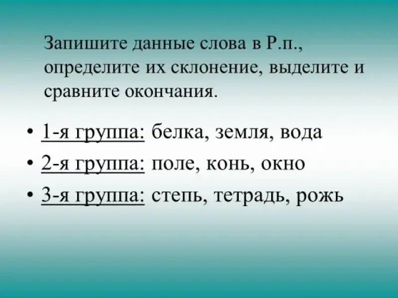 4. Наблюдение над правописанием окончаний имен существительных в родительном падеже (работа в группах по рядам)