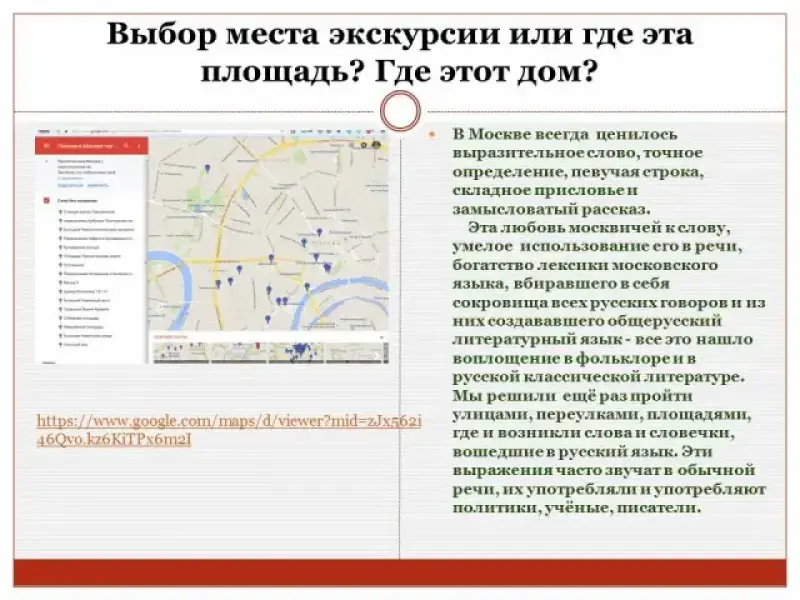 Исходя из навыков класса, возможно заполнение рабочего листа, на котором размещен маршрут экскурсии и остановки на маршруте.