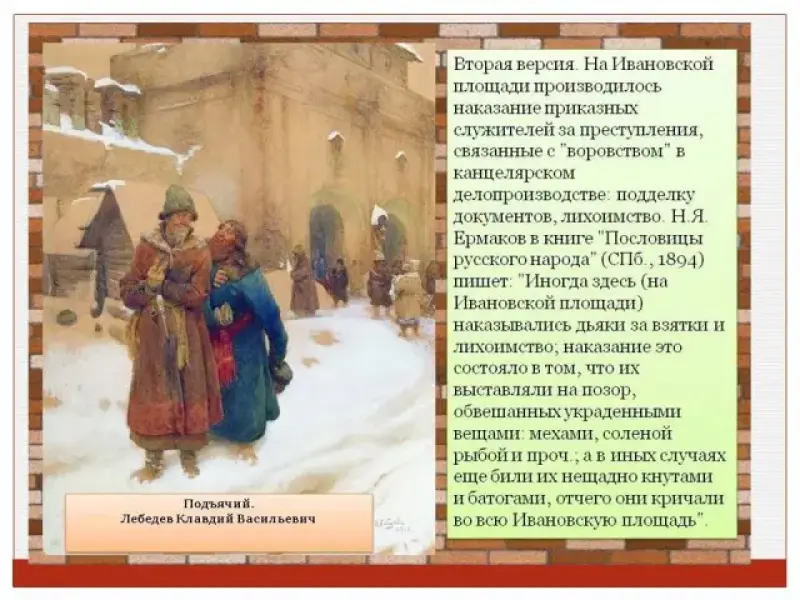 Мы решили ещё раз пройтись улицами, переулками, площадями, где и возникли слова и словечки, вошедшие в русский язык. Эти выражения часто звучат в обычной речи, их употребляли и употребляют политики, учёные, писатели.